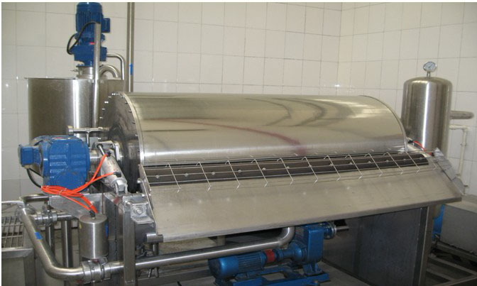 1、转鼓由不锈钢制造,支撑筛网 2、滤网用AISI 316 L不锈钢制造,织网型,孔径65微米 3、出液管带旋转密封 4、槽带有滤饼切除装置,由自动进给系统和不锈5、钢刀组成,由控制面板调节。 5、槽带有排水槽,用于分配预涂的悬浮液。固定在槽底的管道用于进料和收集清洗后的水。 6、槽的自动进料阀为电动阀